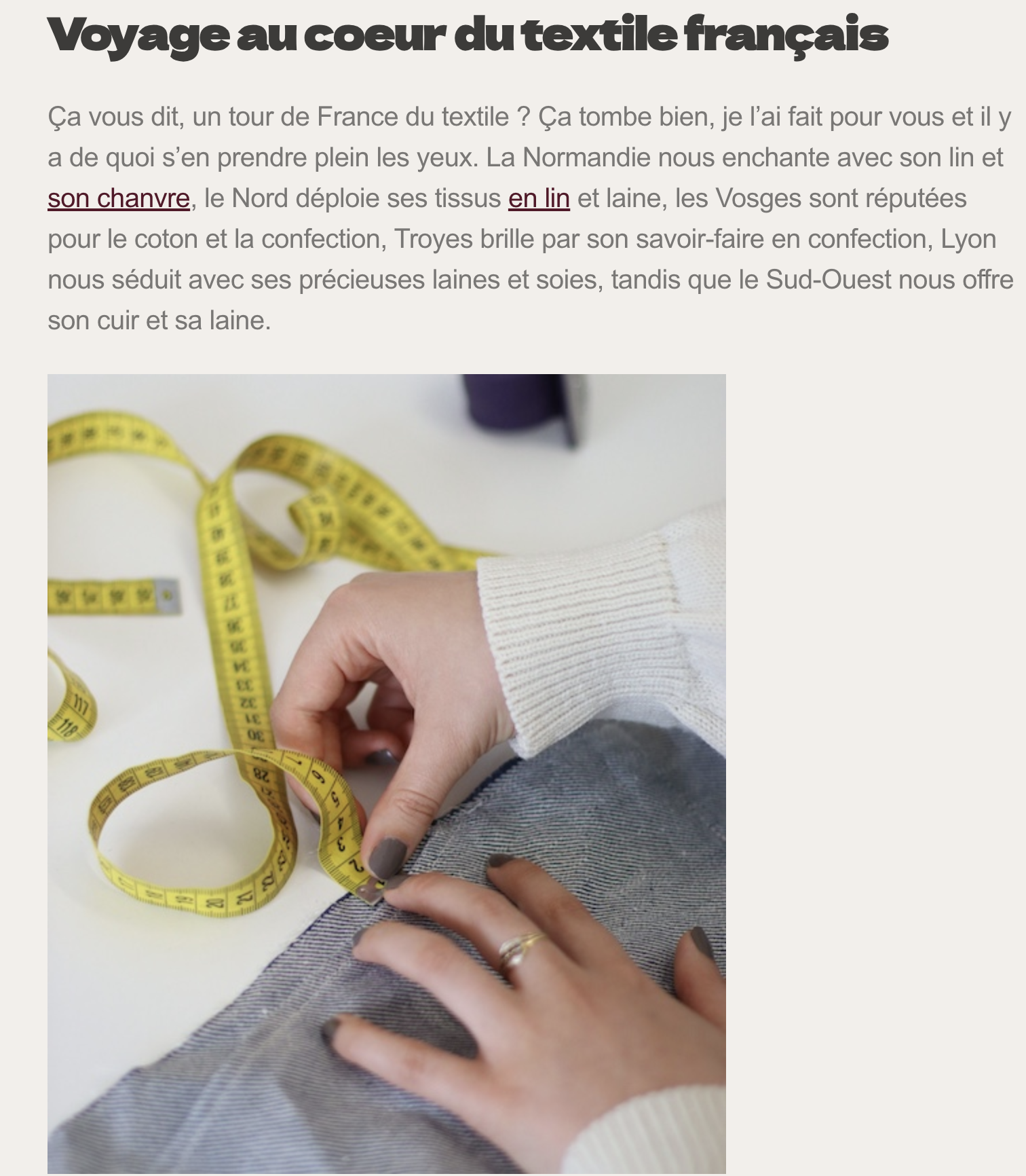 Caroline a fait appel a moi pour valoriser les coulisses de son activité à travers un article de blog bien spécifique qui suit Caroline sur les routes de France, à la rencontre des acteurs du textile de nos régions.