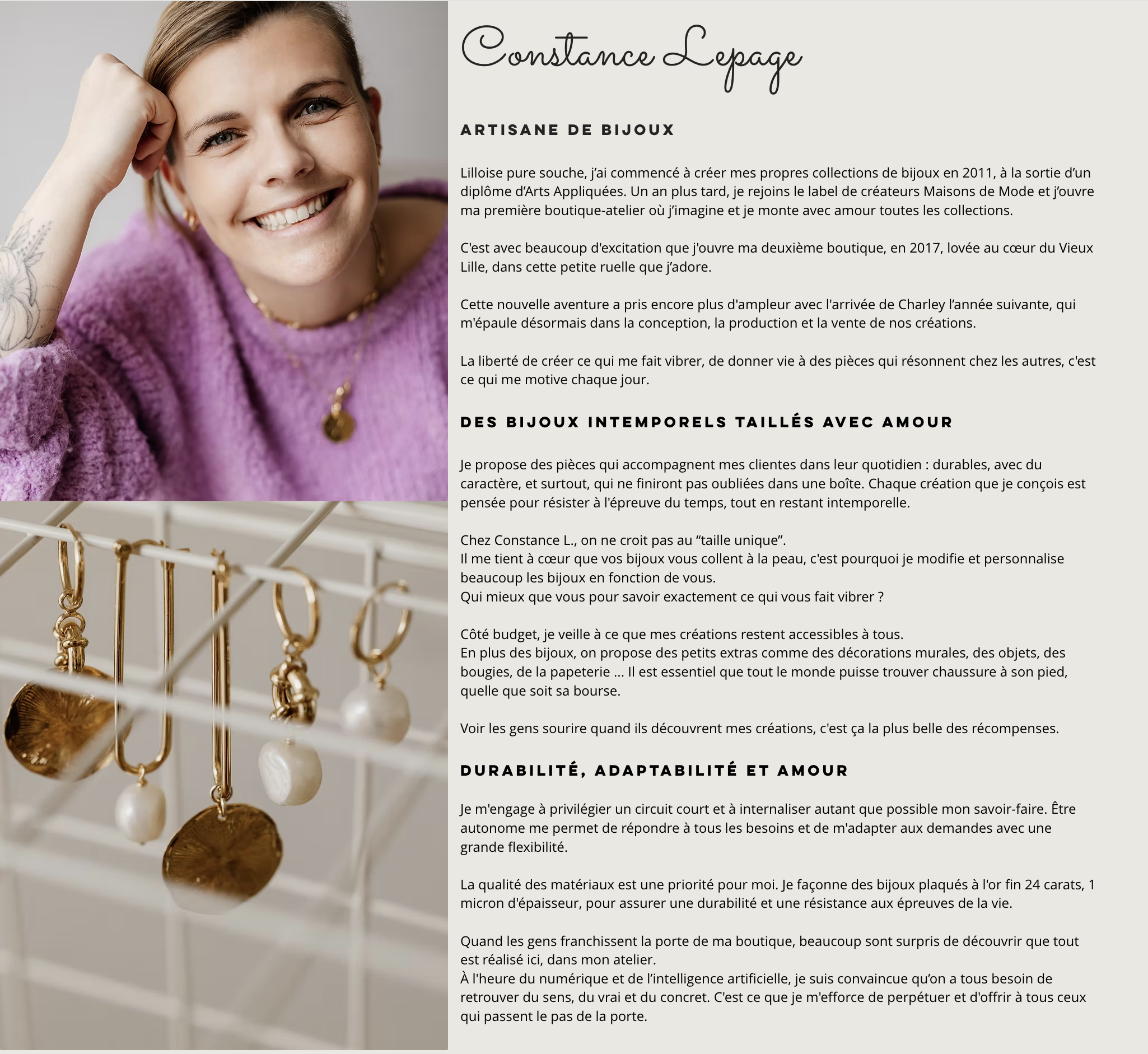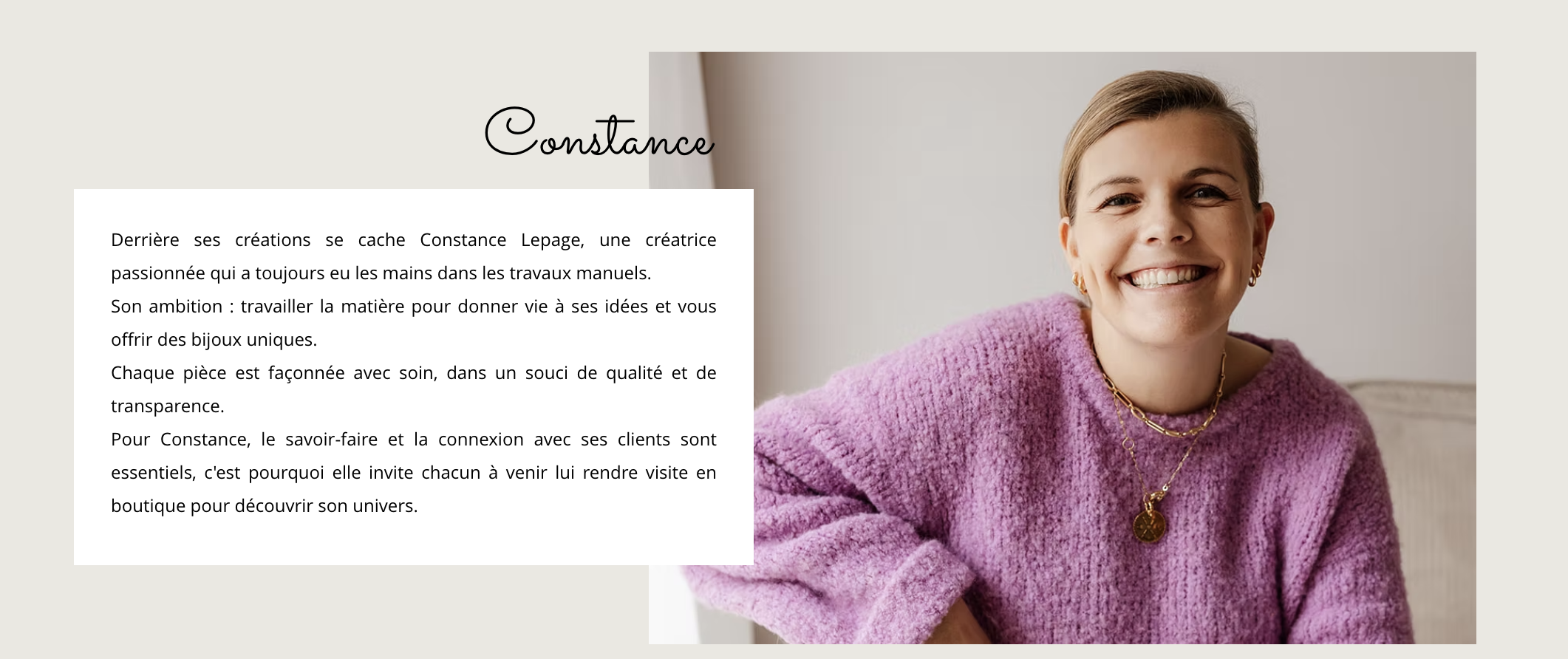 Constance, bijoutière artisanale passionnée (et passionnante) m'a contactée pour faire peau neuve sur son site et parce qu'elle voulait mettre à jour la page de sa prochaine collection. J'ai pris en main le beau bébé et réécris complètement le site de Constance.